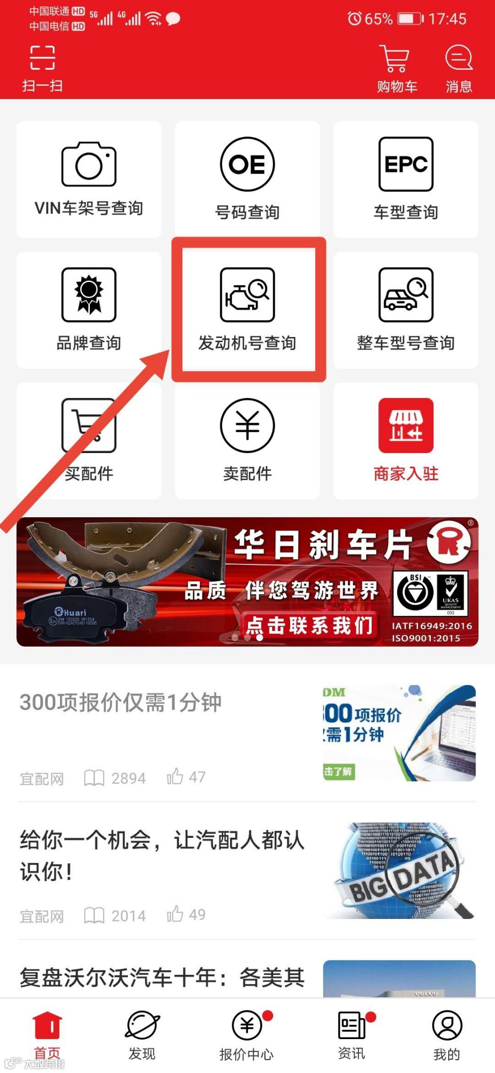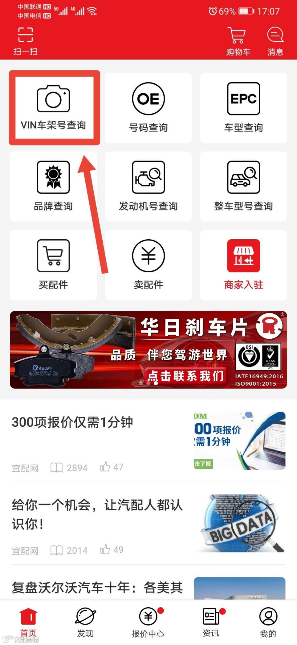 2. 为习惯车架号扫码查询的用户,在跑街令开通了免费的零件查询通道,定位企业零件。(配图)