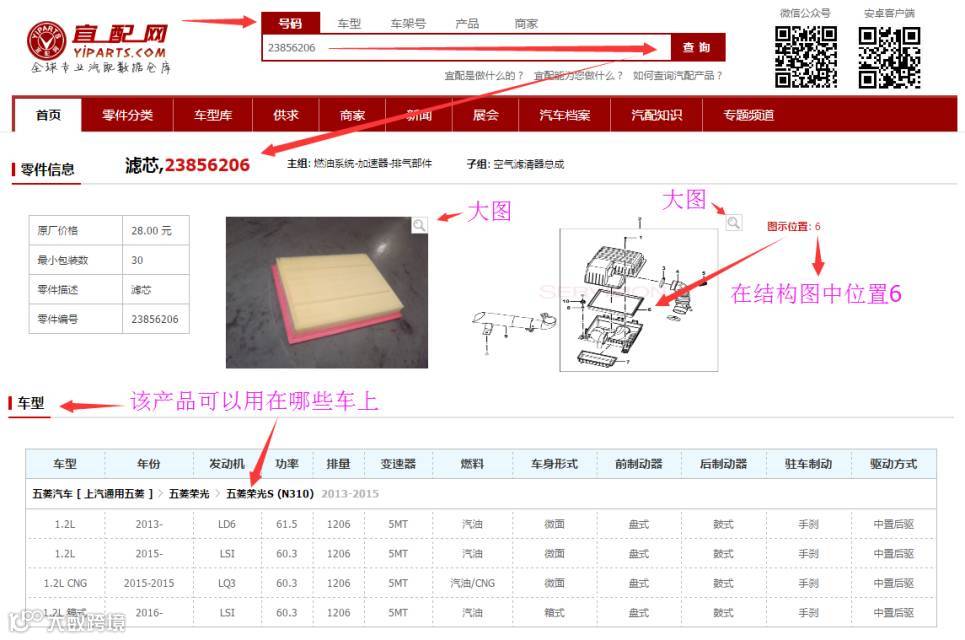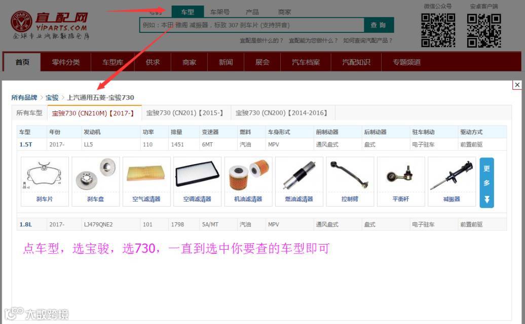 宜配网如何通过原厂号(OE号),车架号(VIN),或者车型,查找五菱以及宝骏的配件?