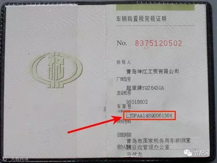 Vehicle Identification Number,中文名叫“车辆识别代码”,也就是我们平常所说的“车架号、大架号”,是制造厂为了识别而给一辆车指定的一组字码。