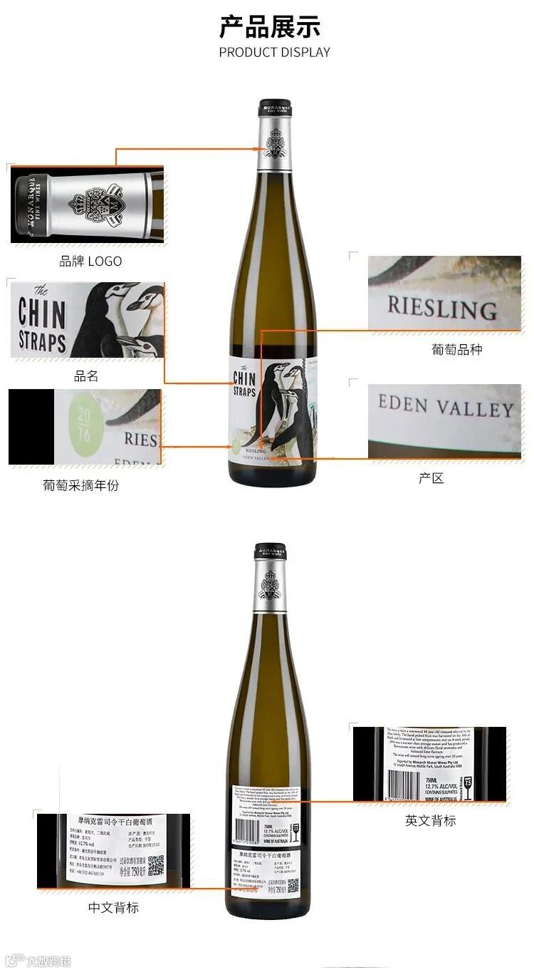 【摩纳克2016企鹅雷司令干白葡萄酒】