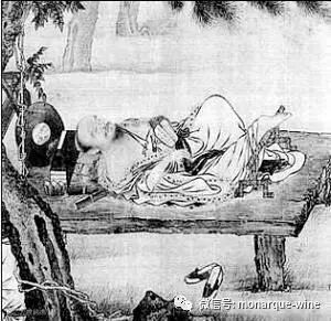 当然,杜康为夏朝人或周朝人,与刘伶根本不可能相见,把他俩扯到一起只能说明刘伶在善饮者心目中的地位,而生活中的刘伶也的确不辱其名,他嗜酒之狂之癫实为前所未有。