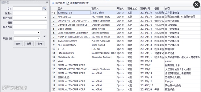 b)跟进记录以时间为轴线,支持像QQ聊天记录一样查询。