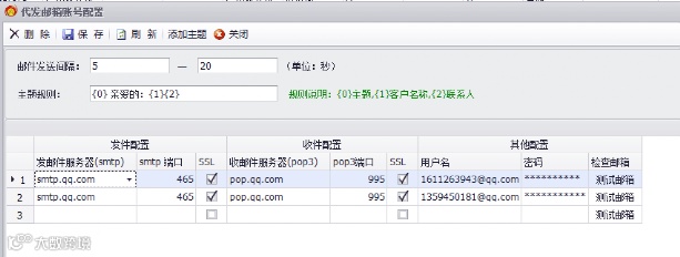 a)针对判断垃圾邮件的标准,应用了伪群发技术,用多邮箱,不同主题,不规律发送时间,自动更改邮件称谓,一键发送的按钮,实际一封封发送,逃离被判为垃圾邮件的命运!