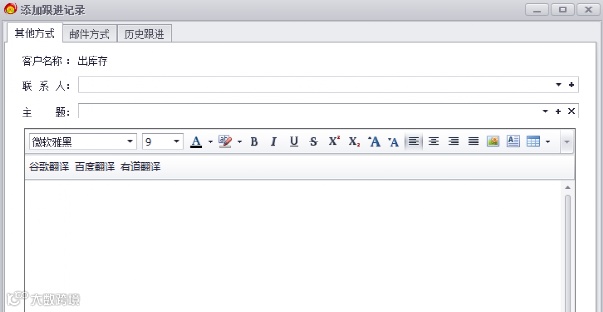 a)邮件自动创建跟进记录,除记录邮件之外,还可以记录SKYPE聊天记录,可直接截图,粘贴,传真内容,手工填写的备忘录等