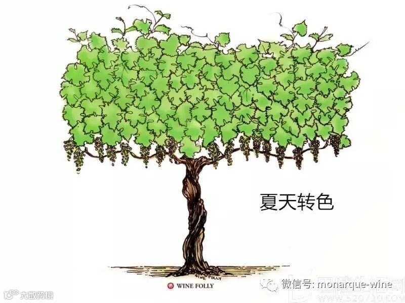 到了仲夏和夏末时,绿色的果实开始转色和成熟,转色期也是葡萄变甜的时候。