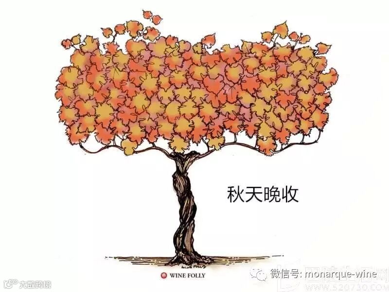 晚秋来临,一些被留在树上的成熟葡萄风干以后,会被用来酿造甜度极高的甜酒。这时,葡萄藤的叶子会变黄,飘零落地。