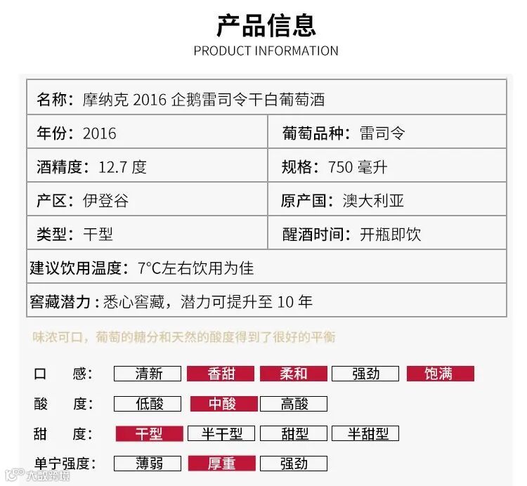 摩纳克2016年帽带企鹅雷司令干白