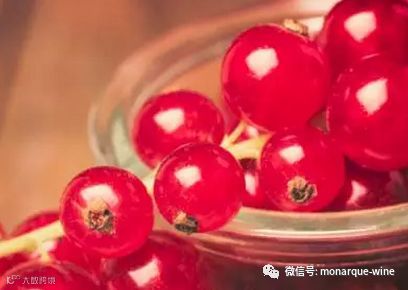 红醋栗(Red currant)相对于黑醋栗果实更加香甜,香气更加新鲜活跃,略酸,还稍带青草味,常出现在黑皮诺和梅洛等酒体较轻的葡萄酒中。红醋栗药用价值极高,我国黑龙江、吉林种植面积较广,国外则主要分布在北欧的芬兰和瑞典。