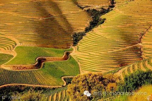 杜罗河的葡萄园分布在河两岸陡峭的斜坡上,斜坡的坡度一般在35°,有些斜坡的坡度甚至小于35°,非常陡峭!