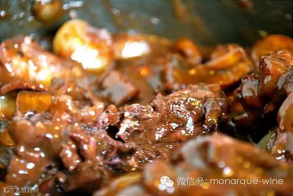 红葡萄酒烩香鸡是一道地道的法国名菜,浸入干红葡萄酒醇香的鸡块散发出沁人心脾的香气。
