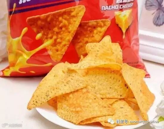 玉米片口味较清爽,配桃红正好。想来点清淡的垃圾食物?有的!多力多滋的美式沙拉酱口味,是它家多种口味中比较淡咸爽口的。