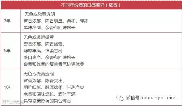 众所周知,"酒越陈越香"!但3年、5年、10年的老年份酒,在口感品鉴上有什么不同呢?或许下面这张表会令你找到答案。
