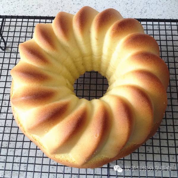 7、烤好的蛋糕,轻轻震几下,倒扣晾凉后脱模切片。