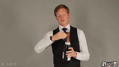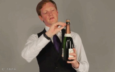 将酒瓶倾斜45度角,并确保该方向没有围观群众。特别的一点是,气泡酒的塞子不是用力“拔”出来的——
