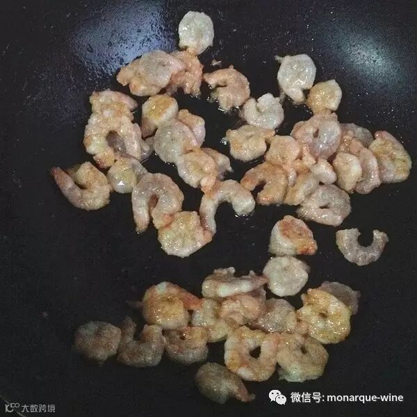 4、干净锅里放入1勺油,虾仁下锅翻炒至变色盛出。