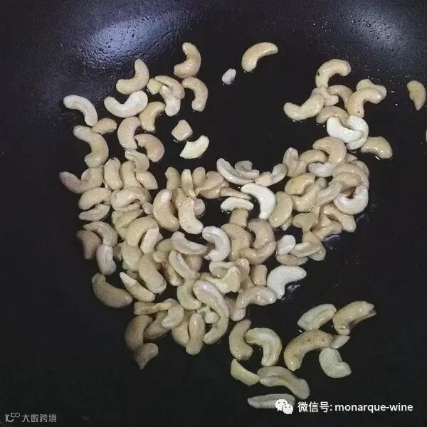 3、锅里放少量油,小火将腰果炒至金黄酥脆盛出。