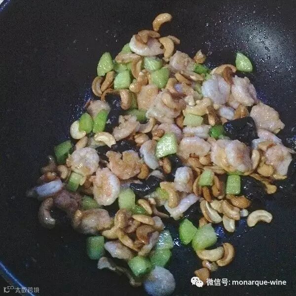6、最后倒入虾仁一起翻炒,再加入腰果即可装盘。
