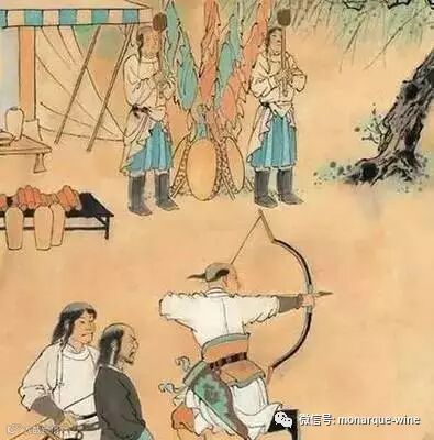 金代习俗,每年三月初三,以木雕为兔,分两朋走马射之。先射中者为胜家,负家下马跪地,高高捧酒奉胜者,胜者下马接杯饮酒。