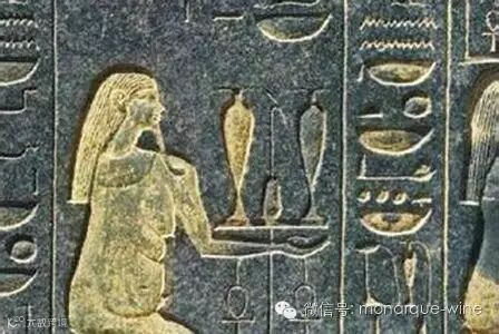 特别是浮雕中,清楚地描绘了古埃及人栽培、采收葡萄、酿制步骤和饮用葡萄酒的情景,这至今已有5000多年的历史。此外,埃及古王国时代所出品的酒壶上,也刻有伊尔普(埃及语,即葡萄酒的意思)一词。