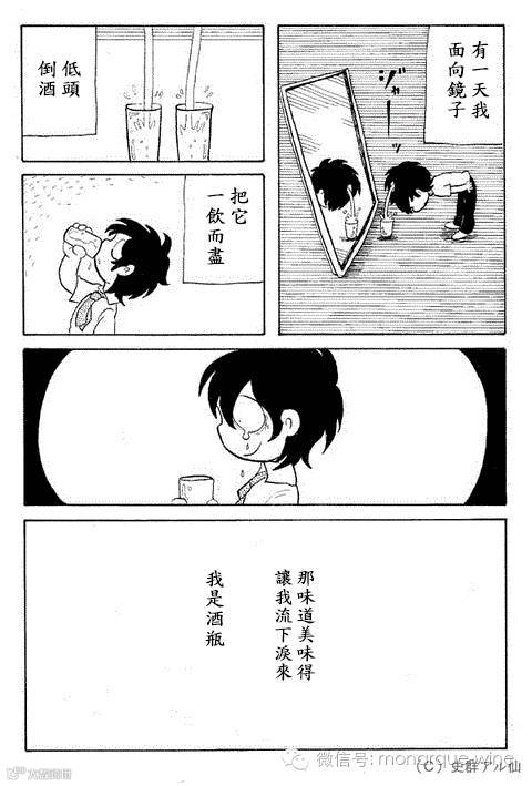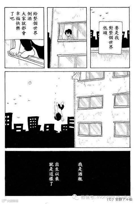 日本的短片漫画《我是酒瓶》讲述了不断低头取悦别人、因此变成被压榨的对象,最后误解自己能用这种方式让这个世界变得更好。很多时候,我们不也是一个酒瓶吗?