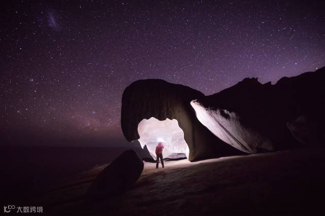 袋鼠岛的神奇岩石(Remarkable Rocks)白日里跟随阳光的照射角度和强度变换五彩色泽,夜里在星空的映衬下点一盏灯,别有韵味。这陌生的夜色,和白日里的景象宛若两地!
