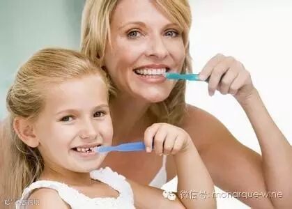 红葡萄酒色素更容易黏着在牙垢上,同时也为了防止牙膏的味道影响品酒,所以尽量在品尝葡萄酒之前1个小时刷牙,切记千完不要在喝完酒后马上刷牙,酒中的酸会软化牙齿珐琅质,刷牙反而会造成长期染色的可能。