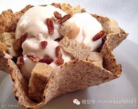 3. 如果是烘烤、坚果风味的冰淇淋,如杏仁、花生、榛子,可以选择雪利酒(Sherry)、马德拉(Madeira)、霞多丽、茶色波特或者圣酒