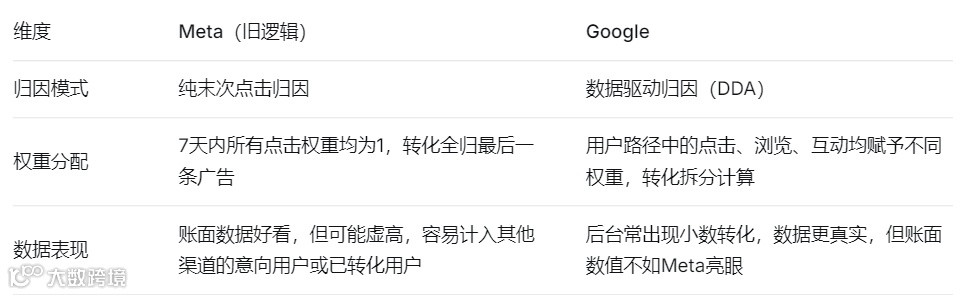 二、Meta与Google归因逻辑对比