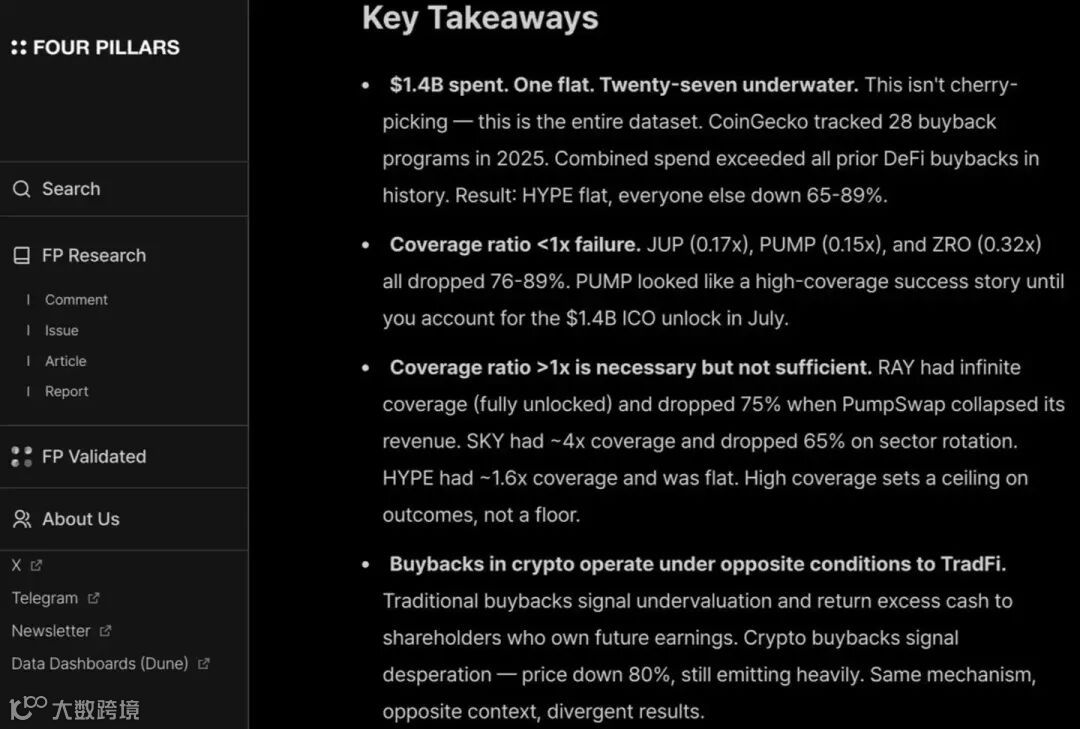 以下 fourpillars 的这份报告,它展示了高达十位数的回购几乎对帮助项目设定长期价格底线毫无作用。