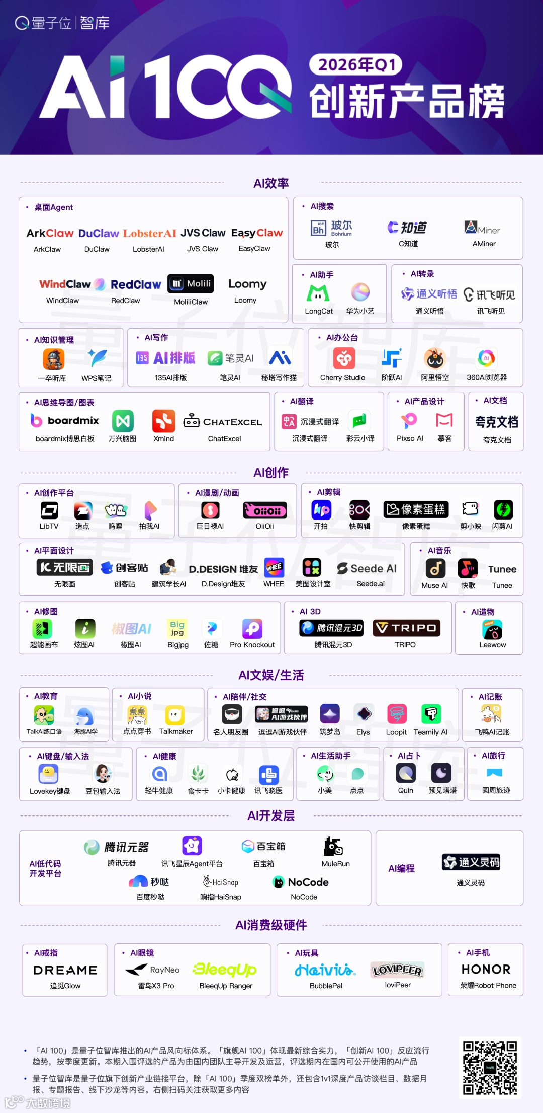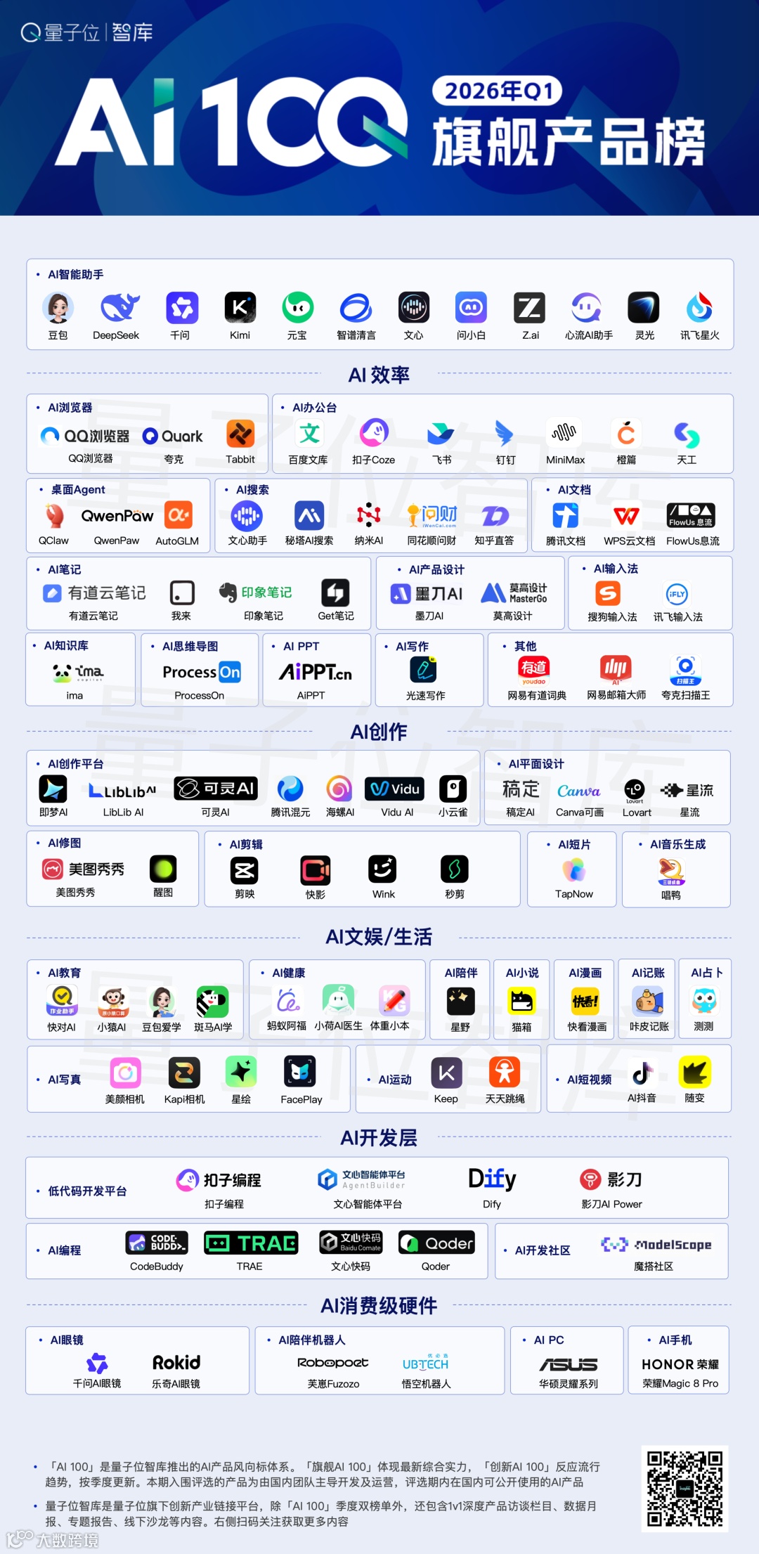 基于对季度市场、产品、技术与用户数据的全面追踪与深度评估,量子位智库正式发布2026年Q1「AI 100」产品双榜单。