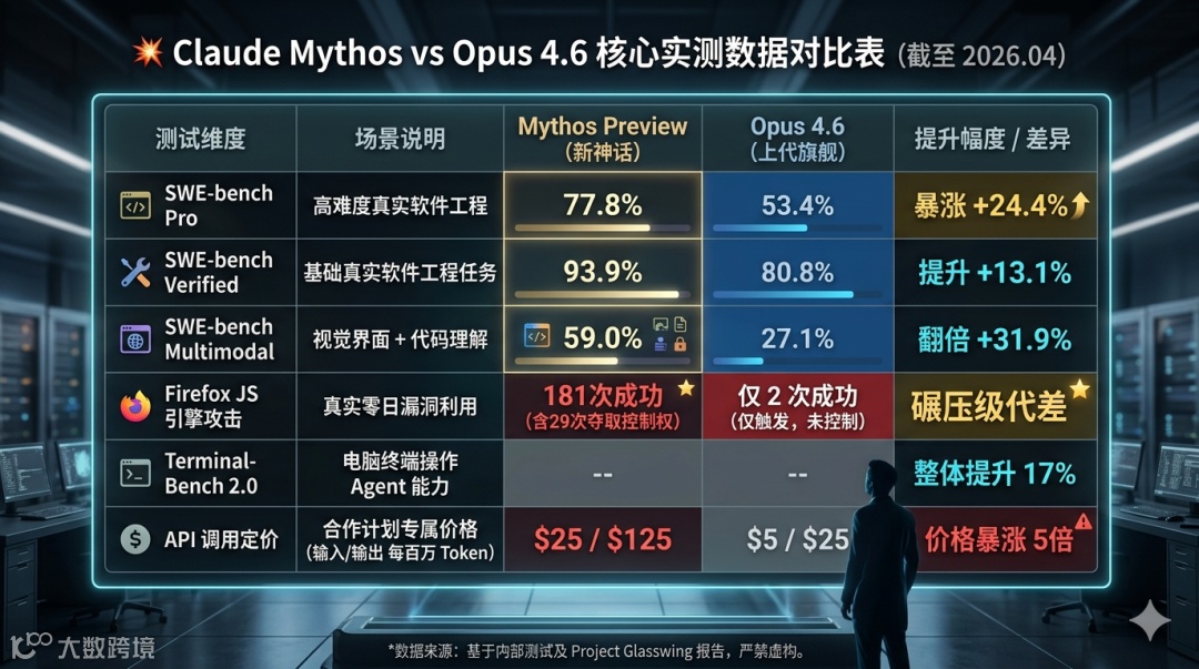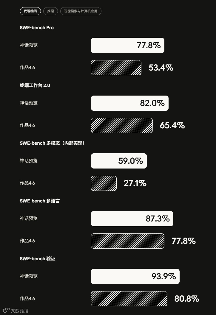 看实测数据的时候,可能很多人对 Opus 4.6 没什么概念,觉得它被 Mythos 甩开20多个点似乎很正常。