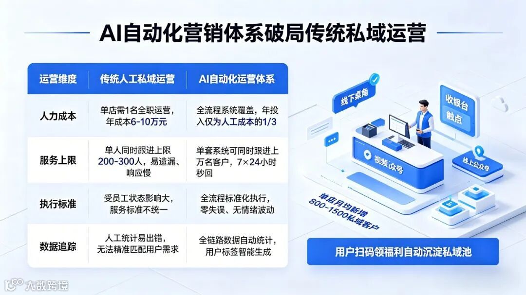 | 运营维度 | 传统人工私域运营 | AI自动化运营体系 |