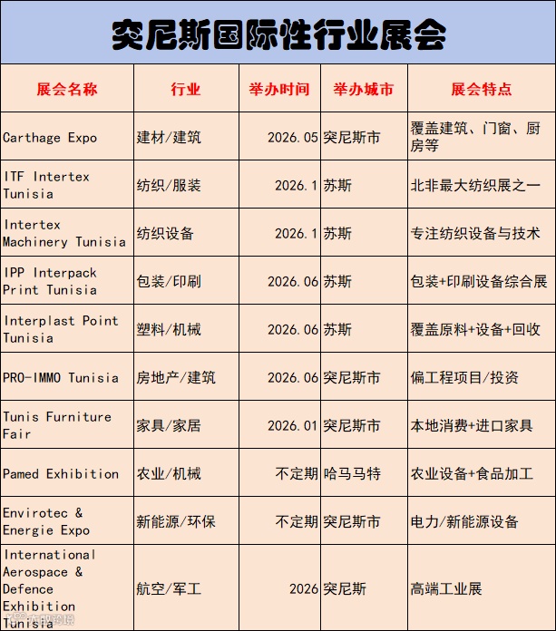 突尼斯的展会不算多,有一些行业展会,有条件的朋友也可以参加一下。