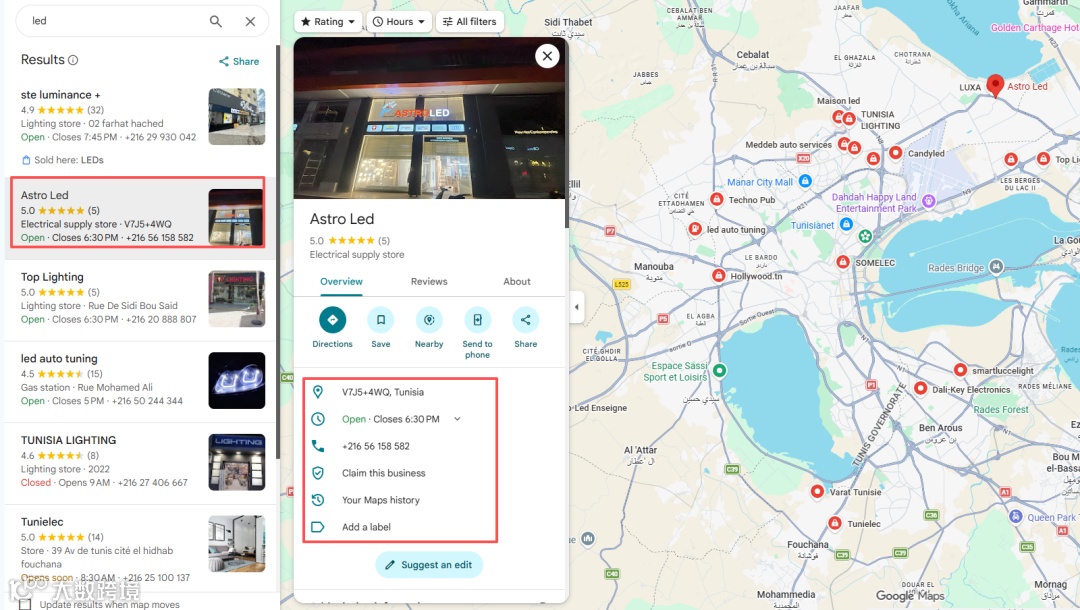 谷歌地图开发客户现在也是非常流行了,而且突尼斯国家的客户信息相对来说比较难获取,这个算是非常有效的方式之一了,还能给客户做背调,还是非常不错的。