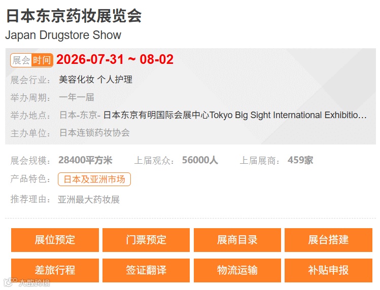 展会定位:日本药妆行业唯一官方贸易平台,同时面向专业买家与普通消费者