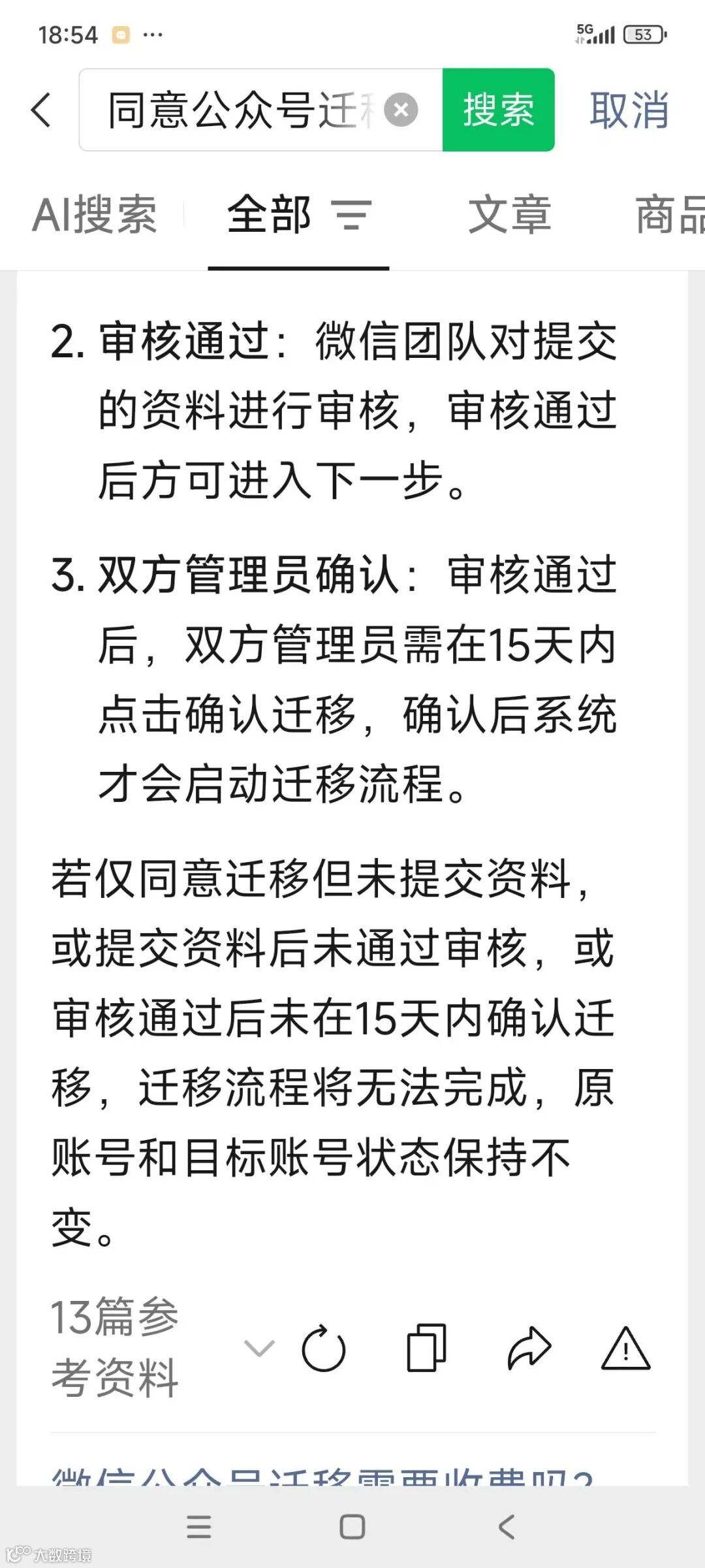 前天周日4月12日晚上23点给新注册的企业号付了300元改名蓝V认证费,昨天上午第三方审核机构就打电话过来了,问她前一天提交了老号迁移到这个新号上,现在又不迁移了改成其他名字许氏家族88,能否把之前的迁移撤回呢?这样不影响新号吧?工作人员说它们负责迁移,只负责审核,迁移要联系对应的人员。接着问工作人员:“有人公众号用了许氏家族,我们把名字改成许氏家族提示重复,如果想用许氏家族名字跟商标上保持一致,怎么做呢?她说:“只能联系对方更改名字或者投诉。” 对方许氏家族名字发的都是跟许姓有关的内容,2022年就停更了。那算了吧,我们就用许氏家族88吧!