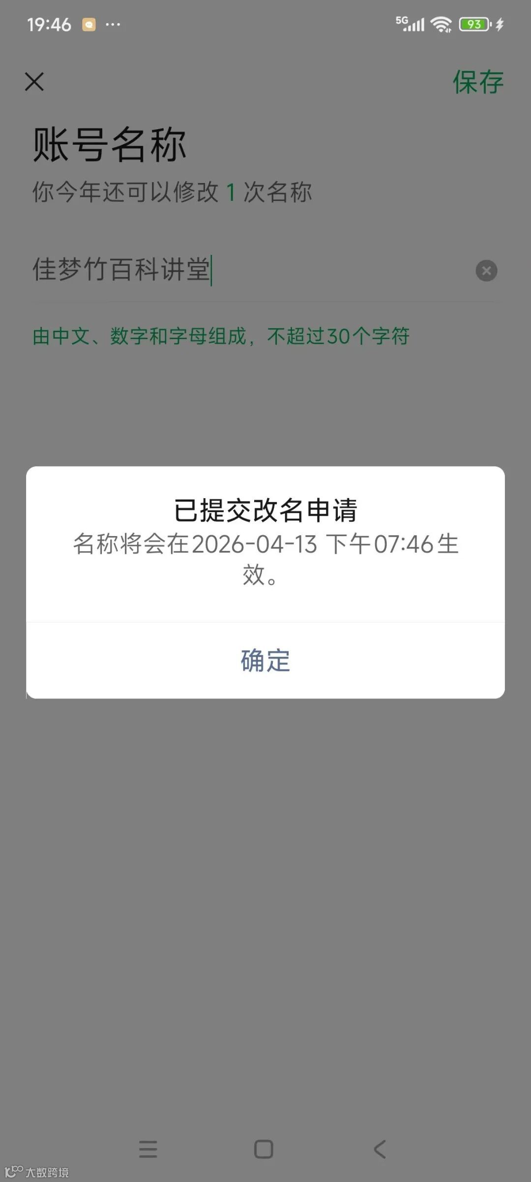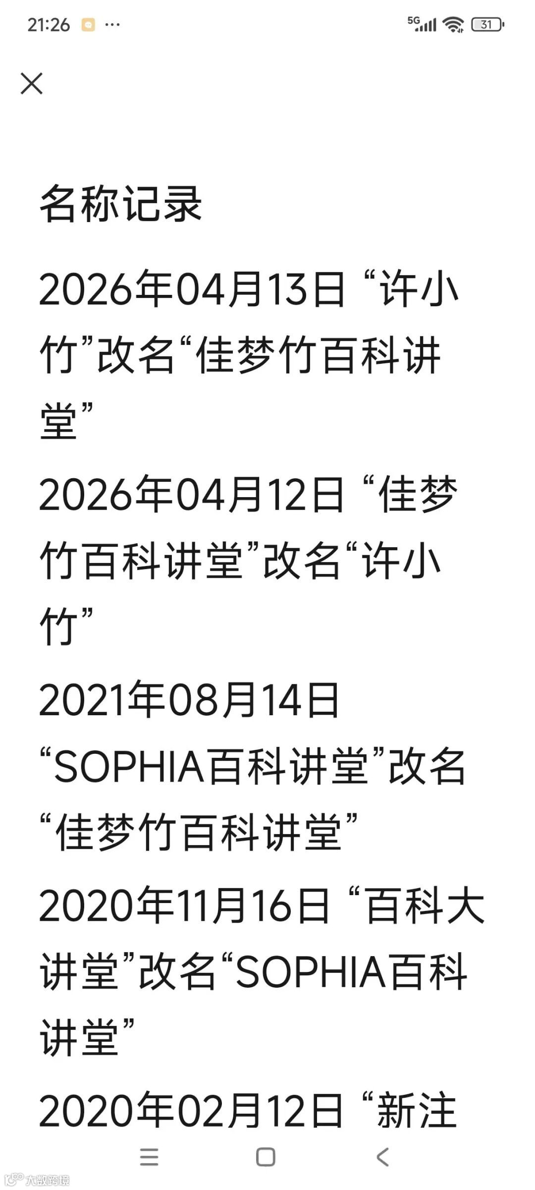 目前,该注册的号都注册了,号足够多了好好运营。目前这个个人号佳梦竹百科讲堂还没想到合适的个人名字,我现在的个人名不好听,跟我村里一个小学同学名字一模一样,村里好多人都不知道我现在的名字。当时上初一的时候改的,也不知道当时为啥要改这个名字,那时候练字大概是现在这个名字好写写起来龙飞凤舞吧!没有什么商业价值。多次想过改名字,联系村里同学给派出所打电话,人家都说不好改毕业证档案名字都不好弄。不行了,到了明年2027年重新注册一个新的佳梦竹百科讲堂企业号,从零开始。