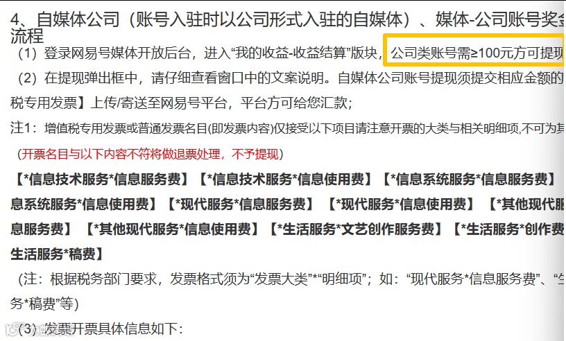 网某号公司号满100元上传或者寄送发票,可以申请提现,也不是AI里说的企业满1千元。反正网某号提现页面是这么说的,提现金额的改变有可能跟广州案件的判决有一定的关系,相比之前个人号必须满100元才能提现好了很多。
