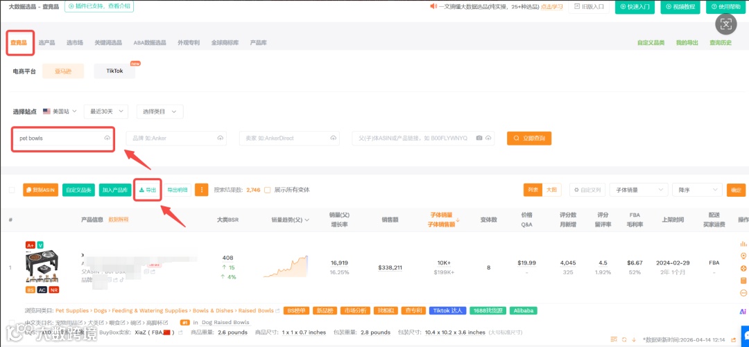 1、竞品筛选:输入核心关键词,查询后导出数据,筛选出“销量稳定(日均20-100单)、评论数50-300条、好评率4.0-4.5星”的优质竞品(避免头部垄断竞品、差评过多竞品)。