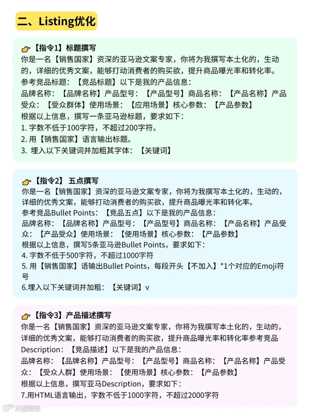 你把产品的基本信息丢给它——材质、尺寸、功能、适用场景——它就能给你生成一套完整的A+文案。从主标题、副标题,到五点描述、场景引导,全都给你安排