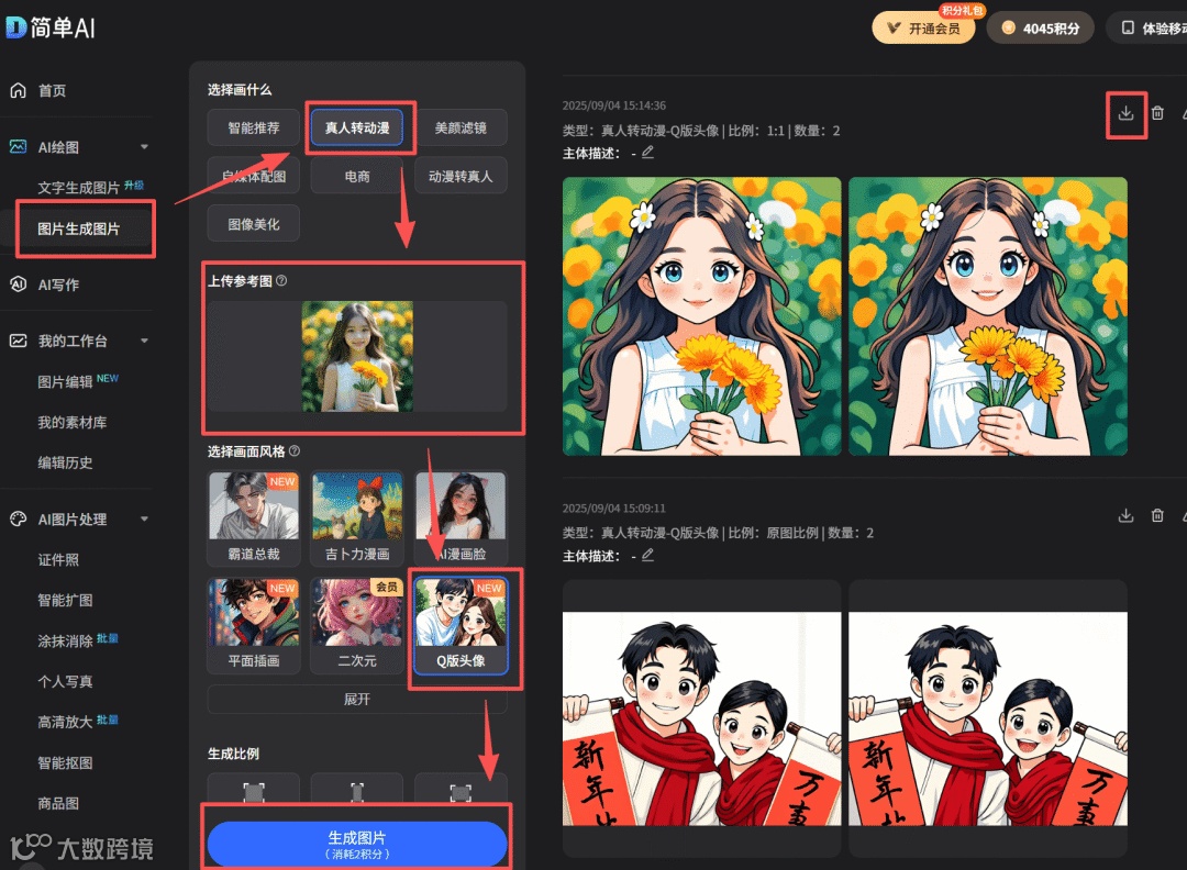 Y2K复古风潮引领社交新趋势,个性化Q版头像成为用户彰显情怀的热门选择。搜狐简单AI推出的“图生图-Q版头像”功能,以复古像素画风一键生成定制头像,唤起千禧年集体记忆。告别传统定制的高成本与高门槛,该工具提供免费便捷解决方案。