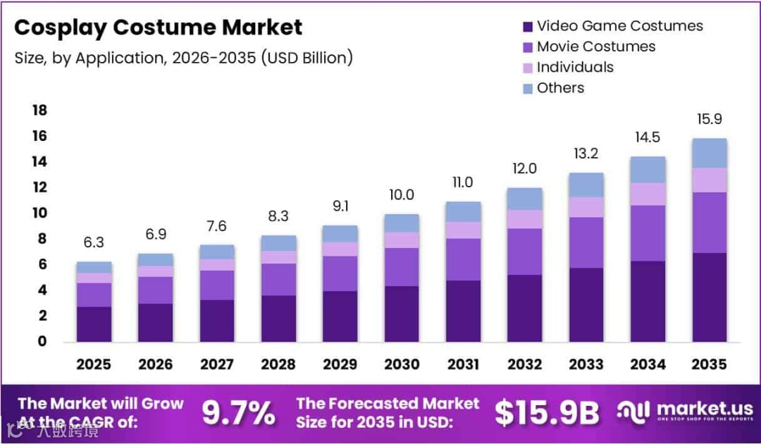 全球角色扮演服装市场将从2025年63亿美元增至2035年159亿美元,2026-2035年复合年增长率9.7%。"sexy cosplay lingerie"搜索量持续攀升。