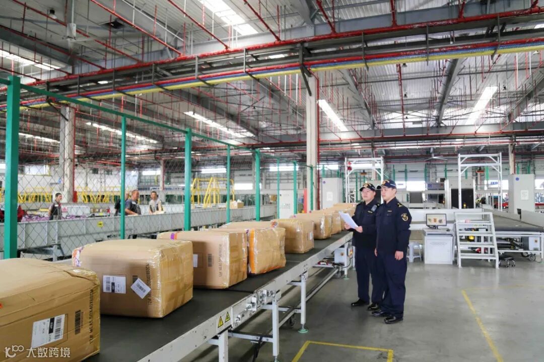 宁波机场海关关员监管首批跨境电商“空空联运”模式出口包裹。通讯员 崔巧雷/摄