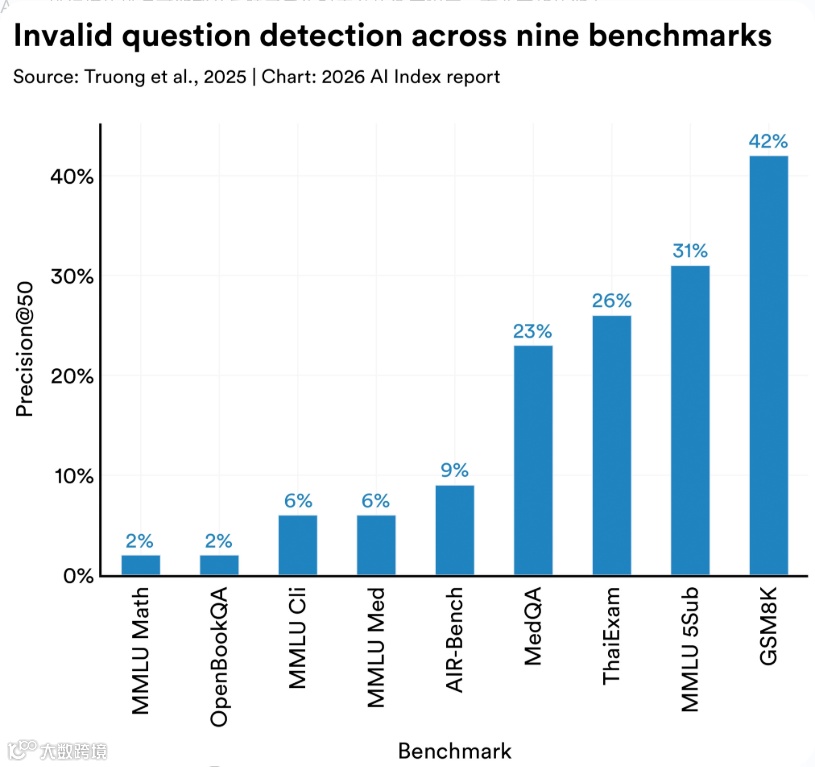 广泛使用的GSM8K数学基准测试中42%题目被证实无效,模型可能通过训练特定数据提升分数,不代表真实能力增强。多家企业拒绝对外公开测试成绩,可信度问题引发行业警惕。