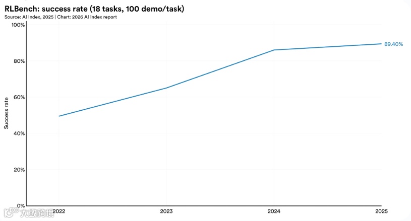 软件模拟环境操作成功率达89.4%,但真实家庭场景骤降至12.4%。自动驾驶成为例外,Waymo和Apollo Go年服务量均突破百万级,凸显物理世界应用瓶颈。