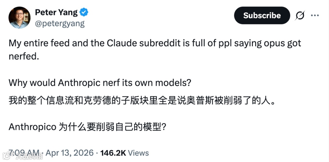 下降的现象。X平台形成密集讨论,用户质疑Anthropic是否有意削弱模型性能。