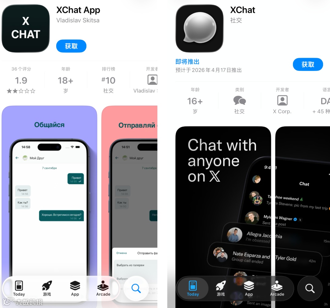 4月11日预约开放即曝高仿App事件,俄语版虚假应用诱导用户提供信用卡信息。安全专家提醒:仅可通过苹果海外版App Store认准X Corp开发商下载。