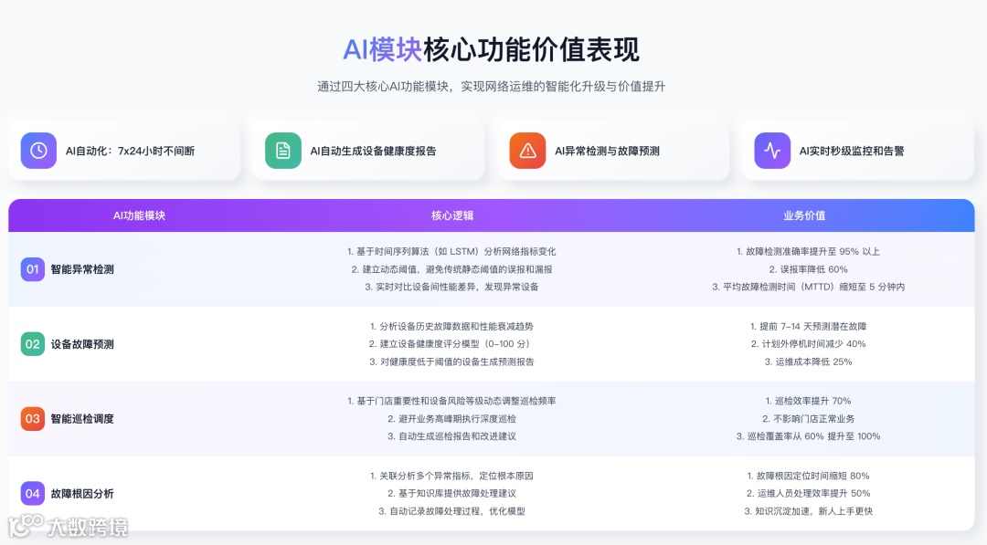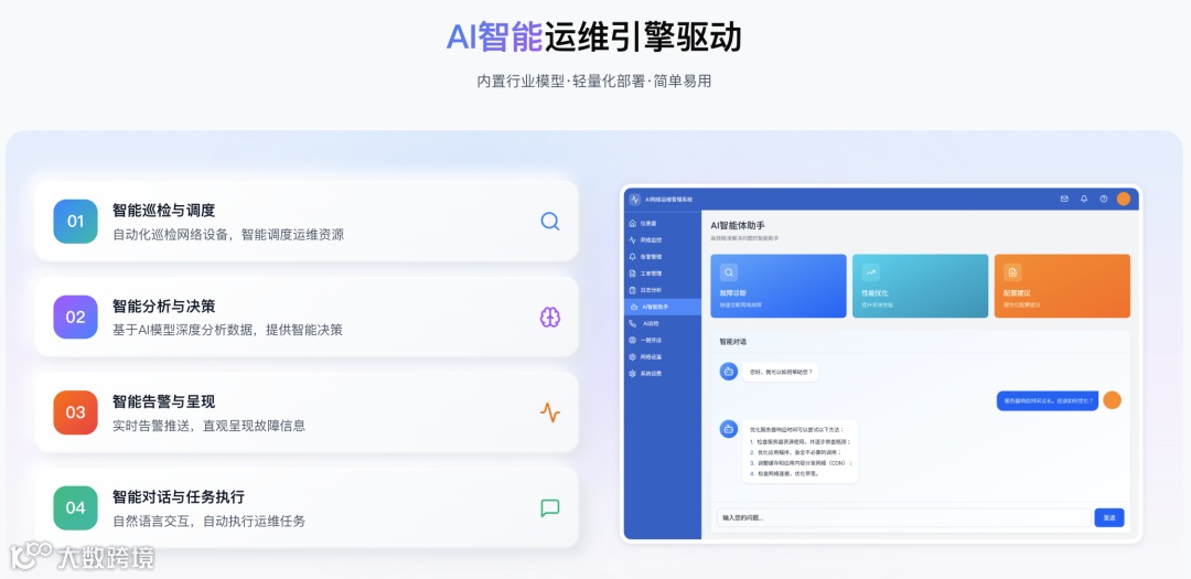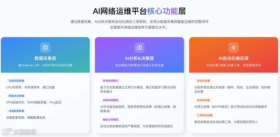 商派AI-NetDevOps平台通过AI驱动实现网络设备全流程智能化管理,核心功能如下: