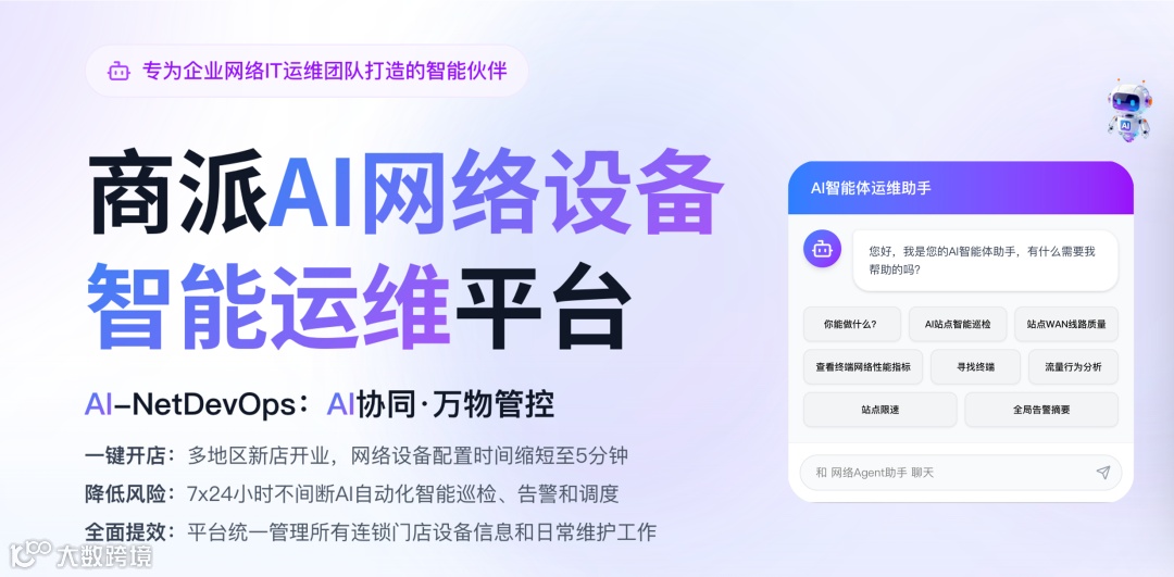 商派AI-NetDevOps平台将网络运维从“成本中心”转化为业务“稳定器”,实现IT少熬夜、门店少故障、运营更高效的企业级运维新范式。