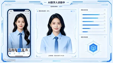 AI 训练 把素材上传给技术团队,AI 算法会自动提取面部特征、五官轮廓、神态习惯,训练出数字人模型;同时提取声纹特征,生成专属语音模型。快的话,1-3 天就能完成,不需要你再做任何操作。